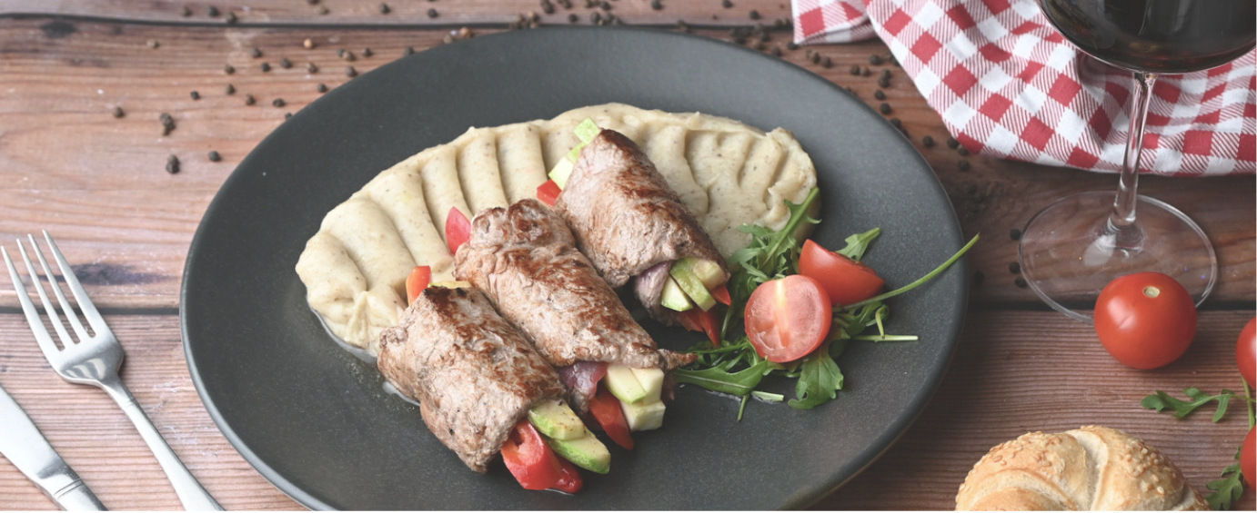 Biftek rolnice sa povrćem na pire krompiru sa tartufima. 2.600.00